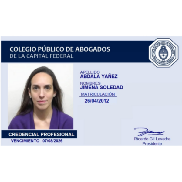 La Abogada Abdala cuenta con una larga trayectoria profesional y académica en materia de Derecho a la Salud. Cuenta con un Postgrado de la Universidad de Buenos Aires sobre Derecho a la Salud y durante muchos años ha trabajado como Jefa de Legales para varias Obras Sociales y Prepagas además de llevar sus propios casos representando a afliados.