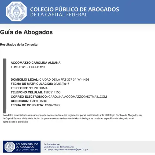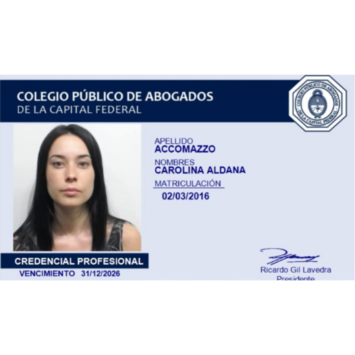 La Abogada Accomazzo cuenta con muchos años de ejercicio en la profesión. Fue abogada apoderada de la Obra Social de Personal No Docente. Dedica gran parte de su carrera a continuar con estudios de posgrado en la Universidad de Buenos Aires. Habiéndose especializado en el proceso de litigación es que ella es nuestra procesalista.