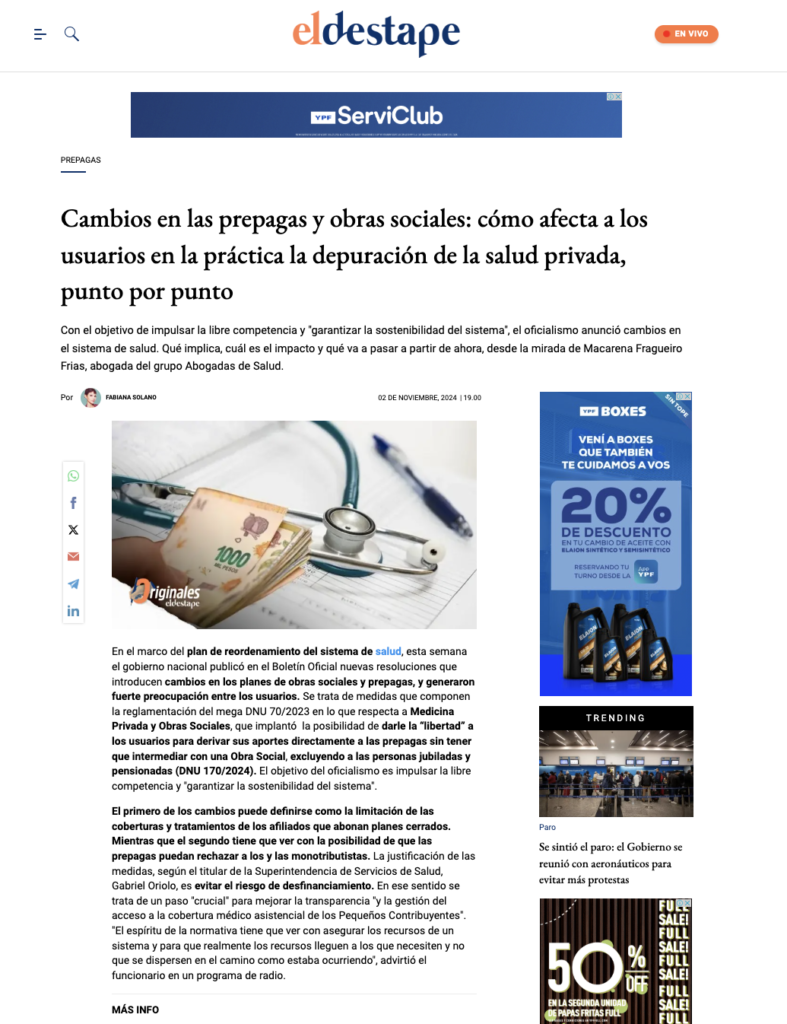 En octubre de 2024, un nuevo decreto amplió estas restricciones, prohibiendo también a los monotributistas derivar aportes directamente a prepagas.